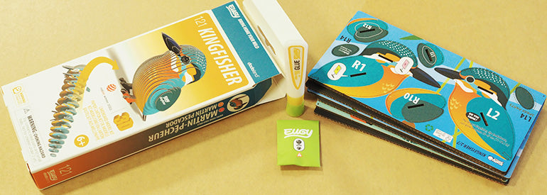 In het doosje zit alles wat je nodig hebt om deze ijsvogel te maken. De 3D modelset wordt geleverd inclusief niet giftige lijm. Elk deel is genummerd om het makkelijk in elkaar te zetten.
