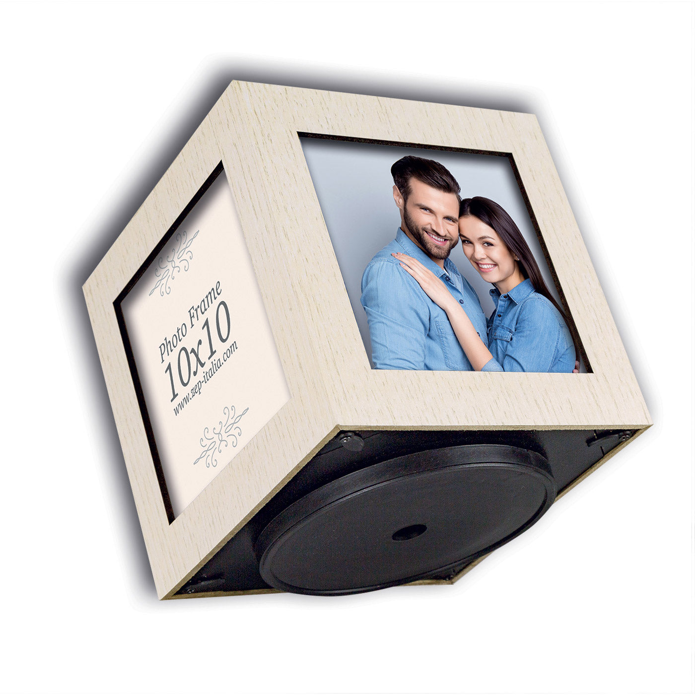 Fotohouder Norman, een mooie draaibare houten fotokubus goed voor 4 foto's 10x10cm. De boomvormige opengewerkte decoratie is ideaal om je favoriete foto's te presenteren. Een nuttig en origineel cadeau-idee!