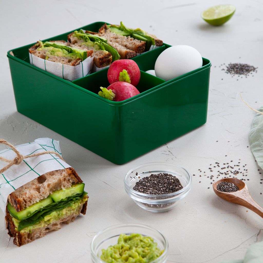 Met drie vakken is het perfect om brood of snacks in op te bergen en mee te nemen naar school. Gezellig lunchen met deze prachtige brooddoos.