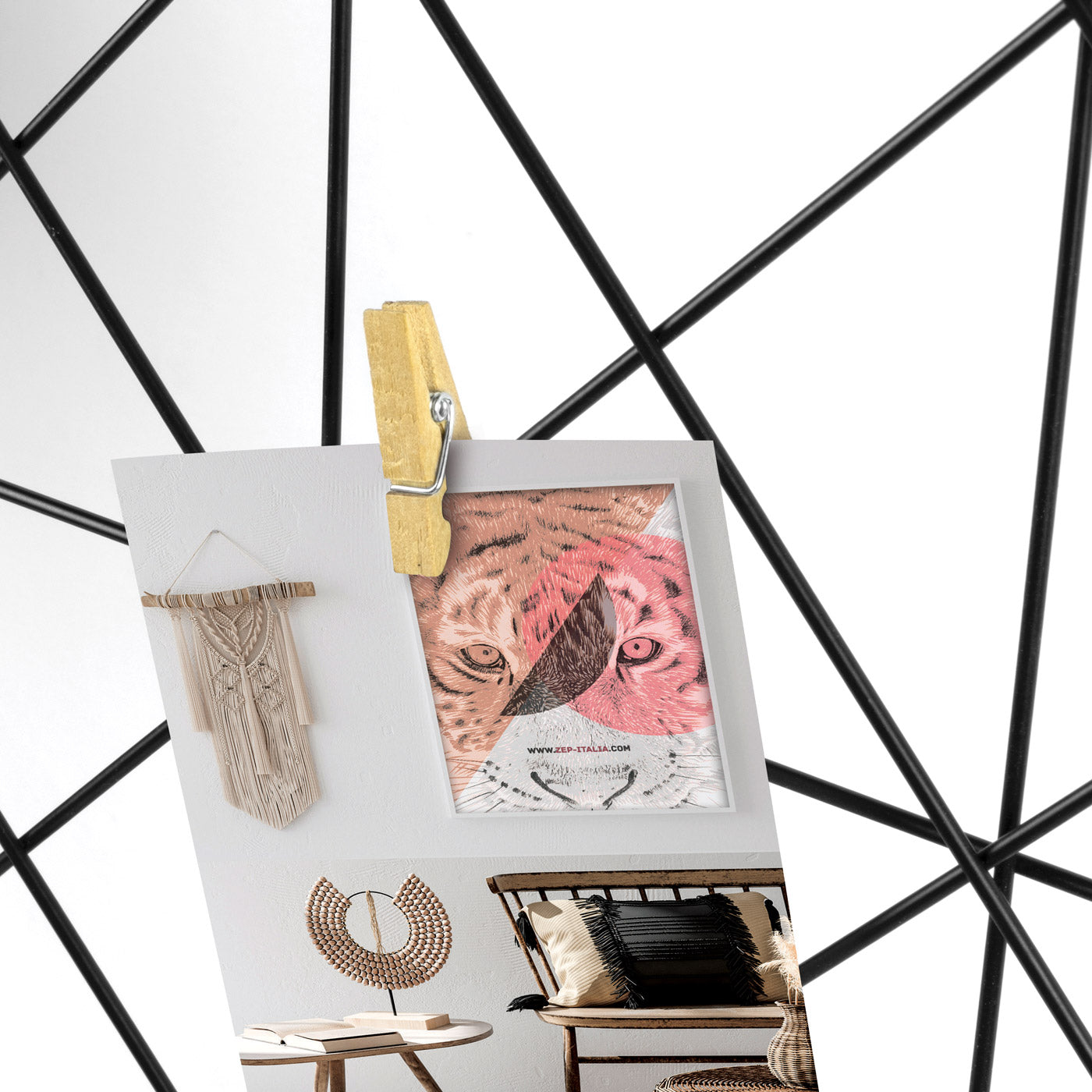 Choletl, metalen memobord, zwart, met houten clips om foto op te hangen. Mooie wandmemobord voor meerdere foto's met 3D geometrische decoratie, geschikt voor thuis en op kantoor.