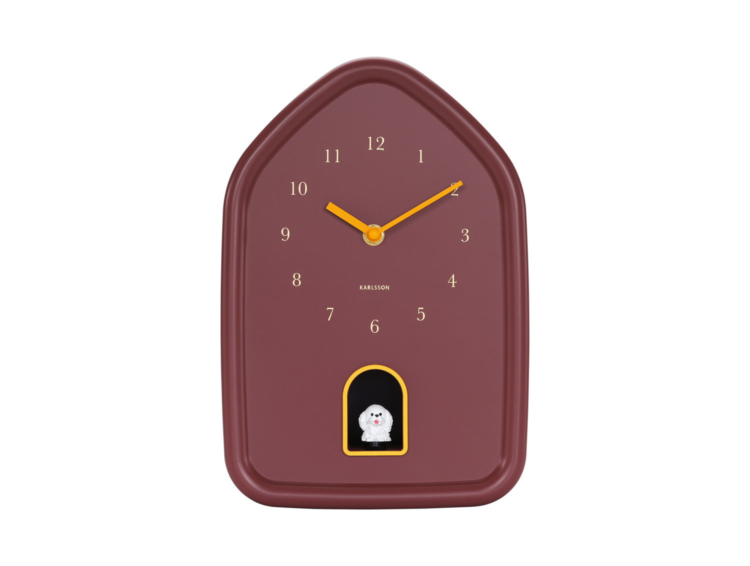 Een modern vormgegeven klok met een verrassend detail: elk heel uur laat een klein brutaal hondje zich even zien én horen. Het strakke silhouet en de subtiele gouden accenten maken dit ontwerp een stijlvolle toevoeging aan elke ruimte. Met zijn zachte vormen en warme uitstraling past de klok perfect binnen het Natural Glow thema. Een speels design met karakter, dat zorgt voor een glimlach, elke keer als de hond blaft.
